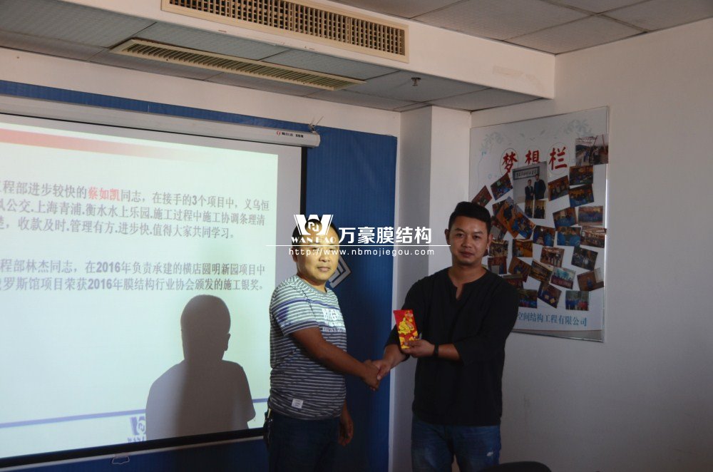 2017年7月,在工程部經理的組織帶領下,公司工程部成功舉辦年中總結計劃會議,工程部經理對上半年的工作做了總結,也提出了下半年的工作計劃,得到張總的認可,會議最后著重表揚了工程部蔡如凱同志和林杰同志。