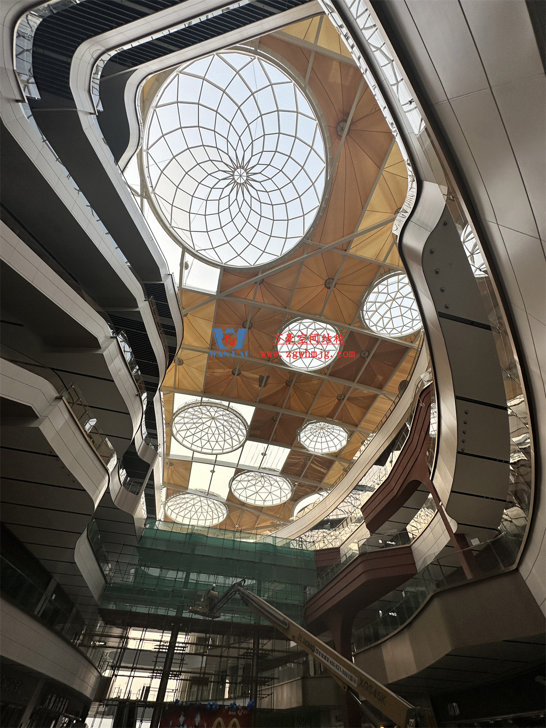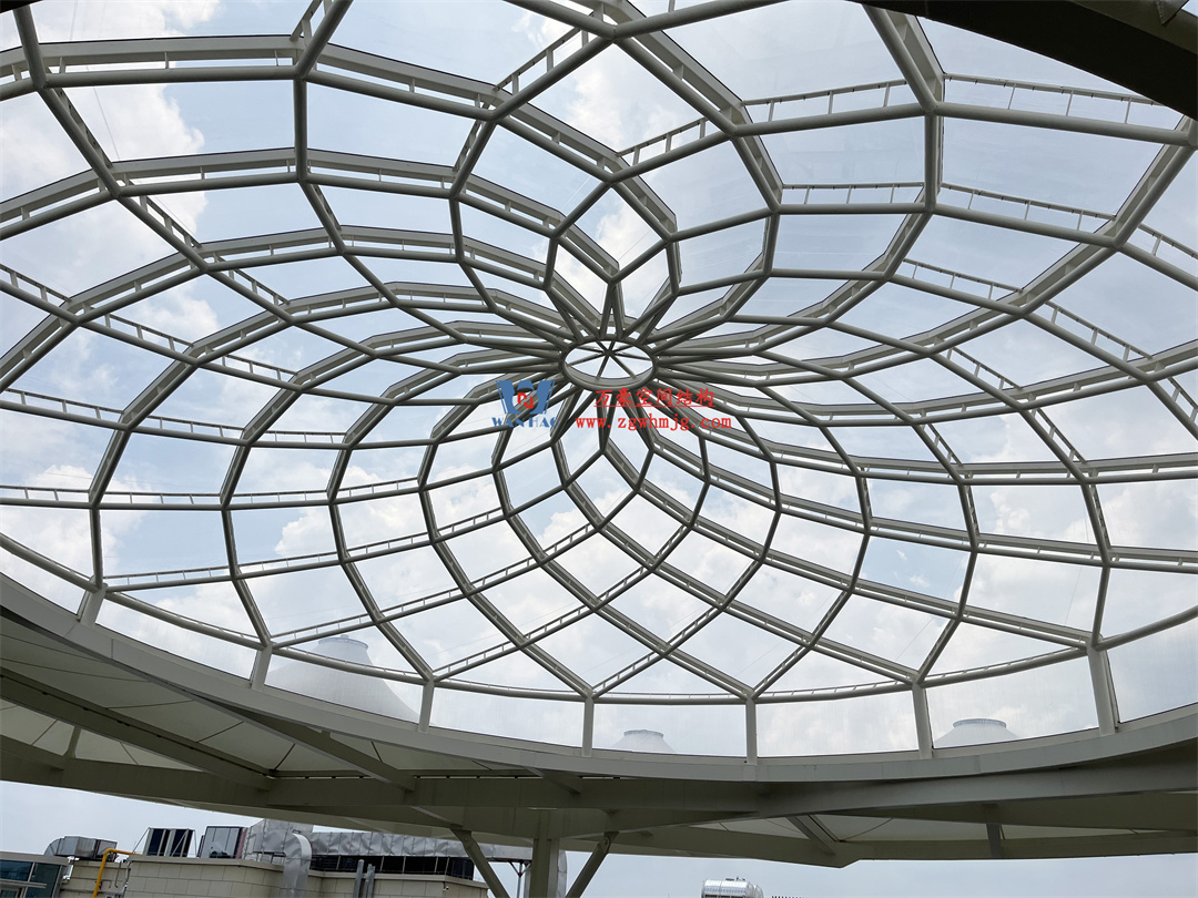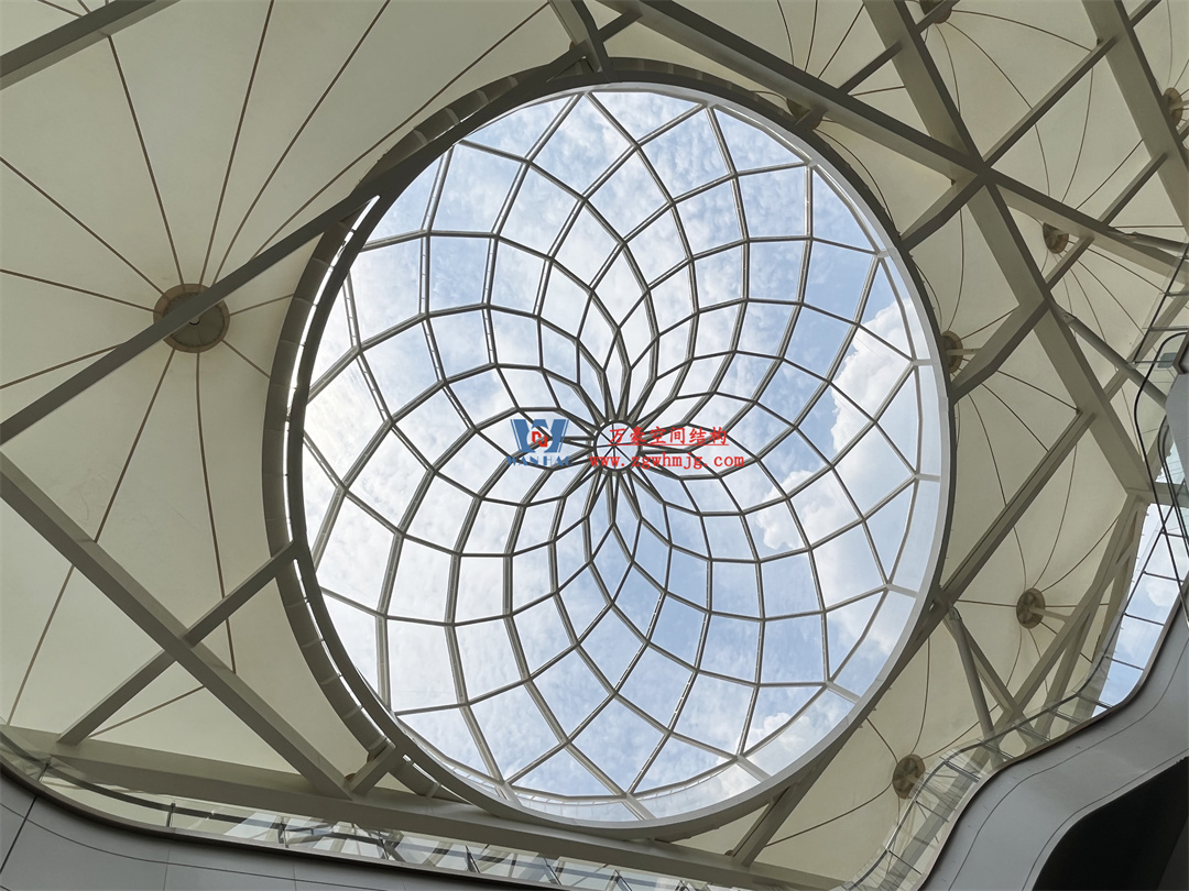 3、適應大跨度:膜結構材質輕,適合大跨度的建筑設計。在大型商業街區中,常常需要建造開闊的空間,膜結構穹頂能夠輕松滿足這一需求,無需過多的支撐結構,使空間更加開闊、通透。