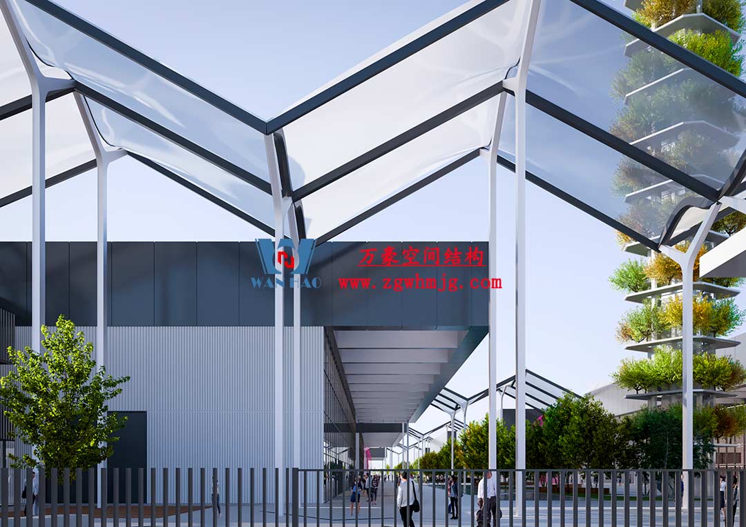 浙江萬豪空間結構集團擔任2027年世博會場館膜結構工程的專業分包單位,負責該場館膜結構部分的施工。項目位于塞爾維亞貝爾格萊德市,二次鋼結構用量超過1200噸,ETFE膜材總面積逾70000平方米,其中包括單層ETFE索膜40000平方米、雙層ETFE氣囊氣枕25000余平方米,以及四層ETFE氣囊氣枕5000余平方米。