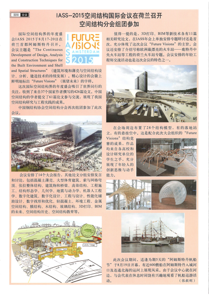 2015年國際空間結構屆年度盛會在荷蘭首都召開,中國鋼結構協會空間結構分會在此組團參加此次會議,本公司作為空間結構協會理事單位,為大家帶來內部期刊內容。