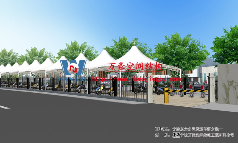 膜結構車棚是用膜材作為圍護構件,用鋼索和鋼桿(抑或是鋼架)作為膜材的支撐結構。同時膜結構柔順的曲面,廣闊的空間,半透明的室內環境,是其具有膜結構停車棚的廣闊發展前景,而在2010年最具有代表性的就是萬眾矚目的世博軸,索膜結構將成為21實際空間結構發展的主流。