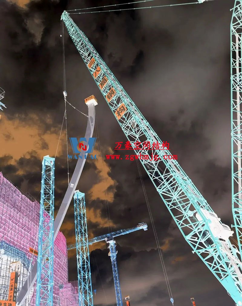 歷時112個日日夜夜,68榀主鋼結構桁架吊裝全部完成。平均每榀桁架從進場、拼裝、吊裝、焊接,全過程用時僅一天半,比原計劃提前12天完成節點目標。