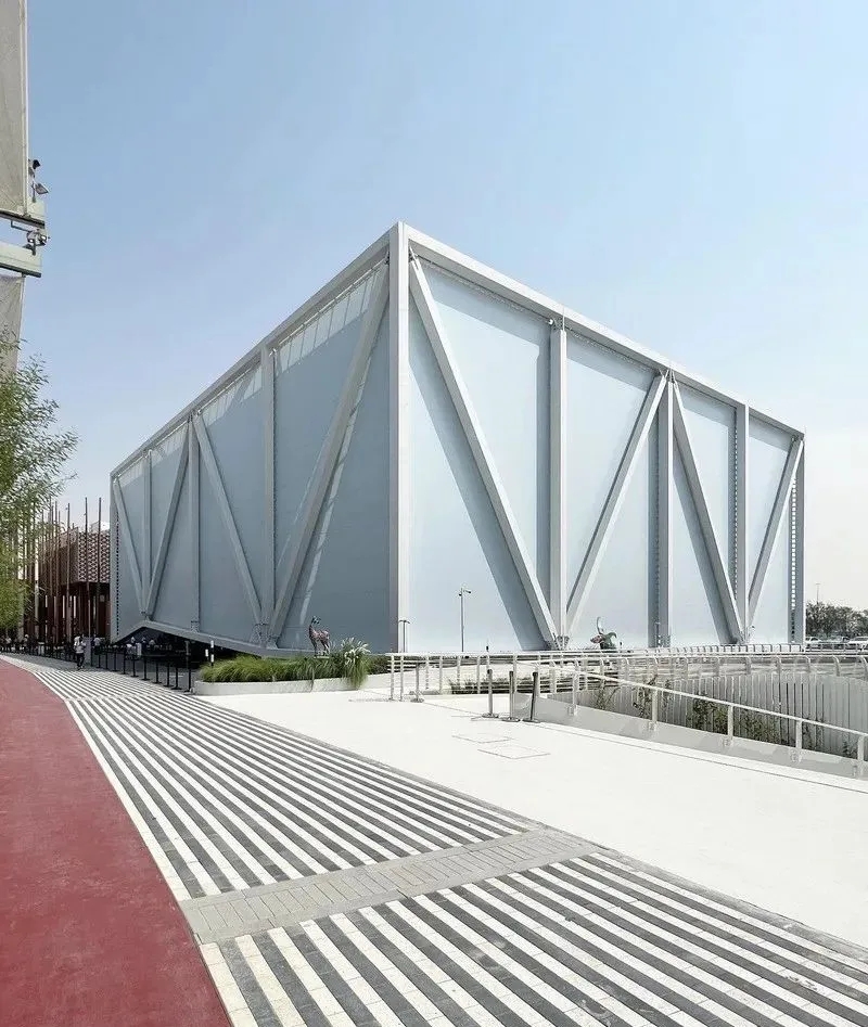 2020迪拜世博會巴西館,給來訪者提供有關巴西生物群落和文化遺產的豐富感官體驗。展館架于一個反射池上方,占地面積近4000平方米,由一個四周覆有輕質半透明膜材的巨大抗拉鋼結構組成。投影設備將巴西的生物多樣性變為真實可觸的在場體驗,展示了巴西這個國家的歷史與文化,以及流行節日、知名城市及其可再生能源。