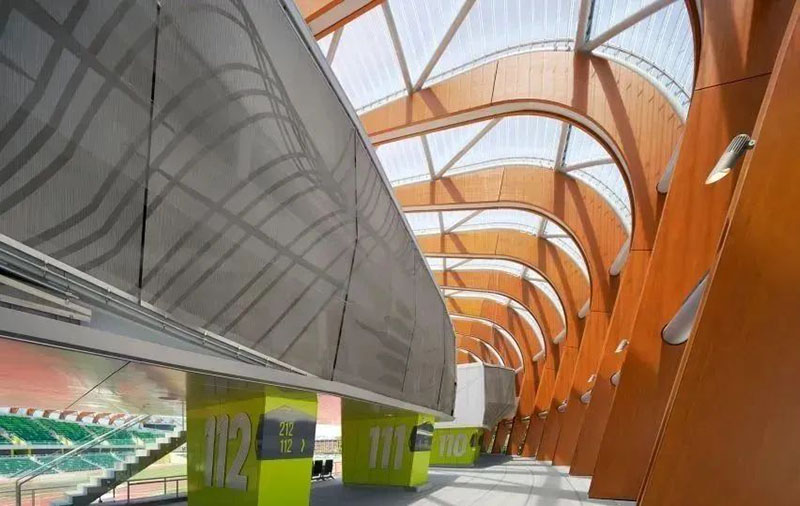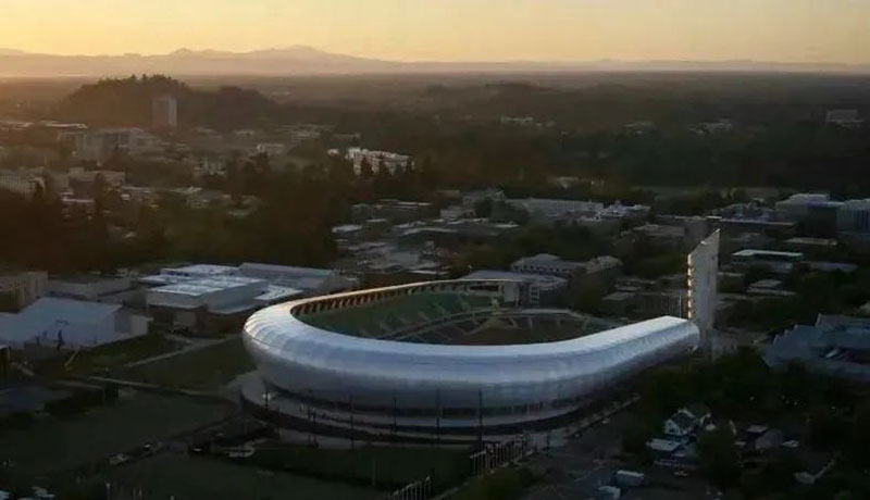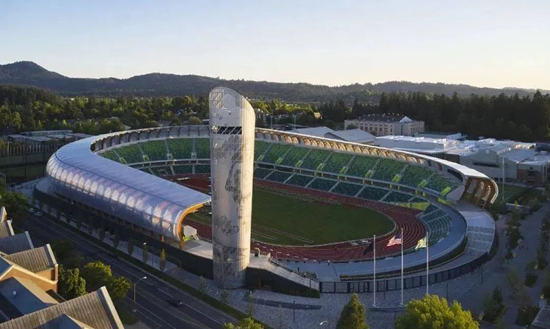 2022年俄勒岡世界田徑錦標賽(World Athletics Championships Oregon 2022),是國際田徑聯合會主辦的第18屆世界田徑錦標賽,7月15日至24日在美國俄勒岡州尤金市舉行。俄勒岡州位于美國西北部靠近太平洋,尤金是俄勒岡州第三大的城市,但也妥妥的是一個人口小城,該市的人口僅有十幾萬,不過在該地區依舊保持著不錯的自然環境及原始風貌。長期以來尤金市經濟主要支柱為畜牧與木材,不過這個看似與牛仔風格更為接近的地方,卻是美國最著名的“田徑之城”海沃德田徑場始建于1921年,是在美國為數不多經過國際田聯1級認證的幾條跑道之一,甚至俄勒岡大學很有信心的認為,海沃德田徑場是稱得上當今世界最棒的田徑場。為了迎接世錦賽的到來,俄勒岡大學在2018年開始,對場館進行了為期兩年的大修。77 個拱狀花旗松膠合木作為主體結構依次排列,每個拱狀主結構都包含六個構件,共計462塊木材。這些拱狀結構支撐著ETFE張拉膜結構,在為場地提供良好的光線的同時,又為觀眾提供了遮蔭。中國選手在這塊場地也留下許多彌足珍貴的印記。2012年劉翔在2.4米/秒的順風下跑出12秒87的成績;2015年蘇炳添第一次跑進10秒大關,創造9秒99的男子百米全國紀錄;張國偉跳出的2米38的成績離2米39的全國跳高紀錄只差1厘米。剛剛,在第十八屆世界田徑錦標賽的男子跳遠決賽中,中國名將王嘉男在自己的最后一跳中跳出8米36的成績,超越了所有對手,為中國田徑隊贏下了本屆世錦賽的首枚金牌,他也成為了中國田徑首位男子田賽世界冠軍。