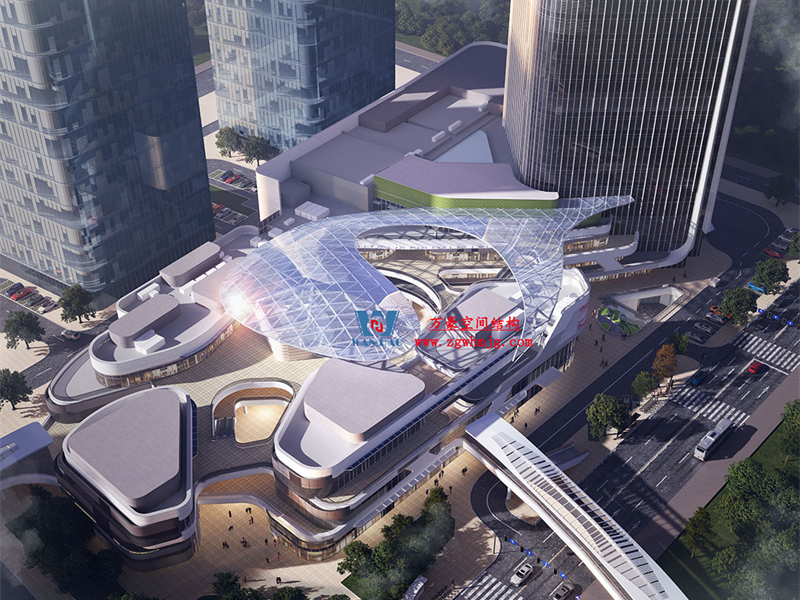 紹興華發(fā)金融活力城ETFE膜結構商業(yè)天幕工程位于浙江省紹興市,該項目ETFE膜結構展開面積約4100平方米。