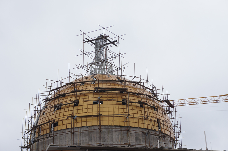 俄羅斯館鋼結(jié)構(gòu)階段,館頂鋼結(jié)構(gòu)正在制作施工中。