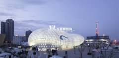 場館是一個24米高,輕鋼骨架外覆蓋雙層ETFE氣枕的建筑。