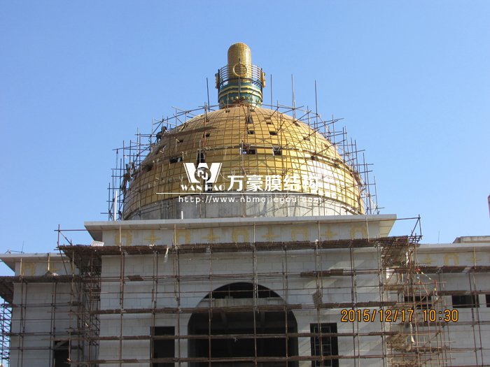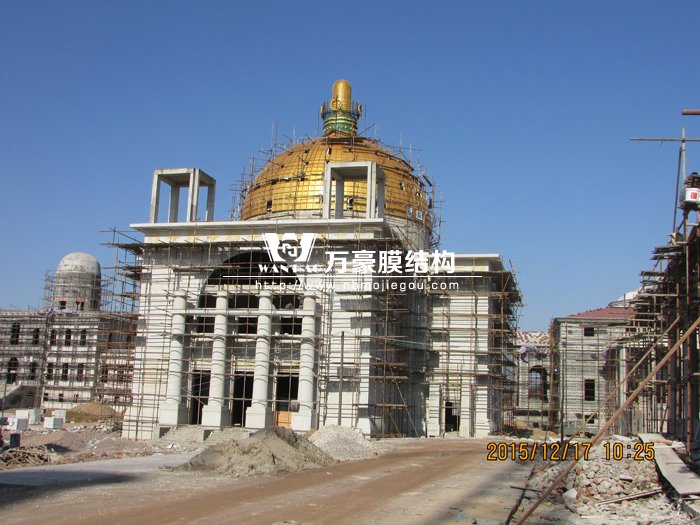奧地利館位于橫店影視城夏園內,館頂采用施工難度很大的雙曲面金屬外面結構,館頂結構高度15.5米,直徑18.3米,底部標高18.8米,經過我司不斷努力,中間不斷和業主單位溝通,項目終于馬上就要完工,相信完工后又會為橫店影視城增添一道新的風景。
