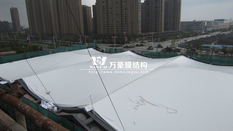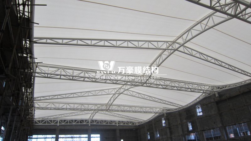 嘉善三小體育館屋面膜結(jié)構(gòu)加蓋,面積約1400平方米,經(jīng)過公司的不斷努力,工程已經(jīng)在工期內(nèi)順利完成。本工程采用白色膜材料,膜結(jié)構(gòu)因為跨度大、工期短、造型美觀等特點,已經(jīng)在越來越多的工程上應(yīng)用到,體育場館非常適合膜結(jié)構(gòu)的使用,近年來不管是大型的體育場館還是小型的運動場地,選擇膜結(jié)構(gòu)的都非常多。