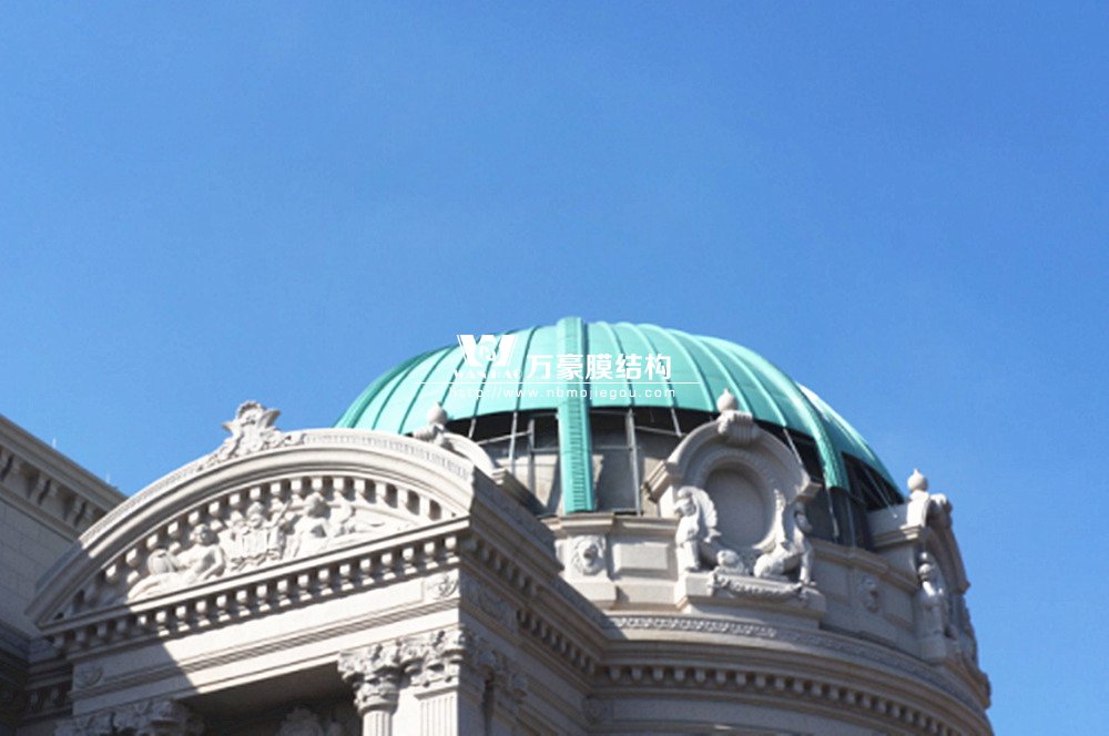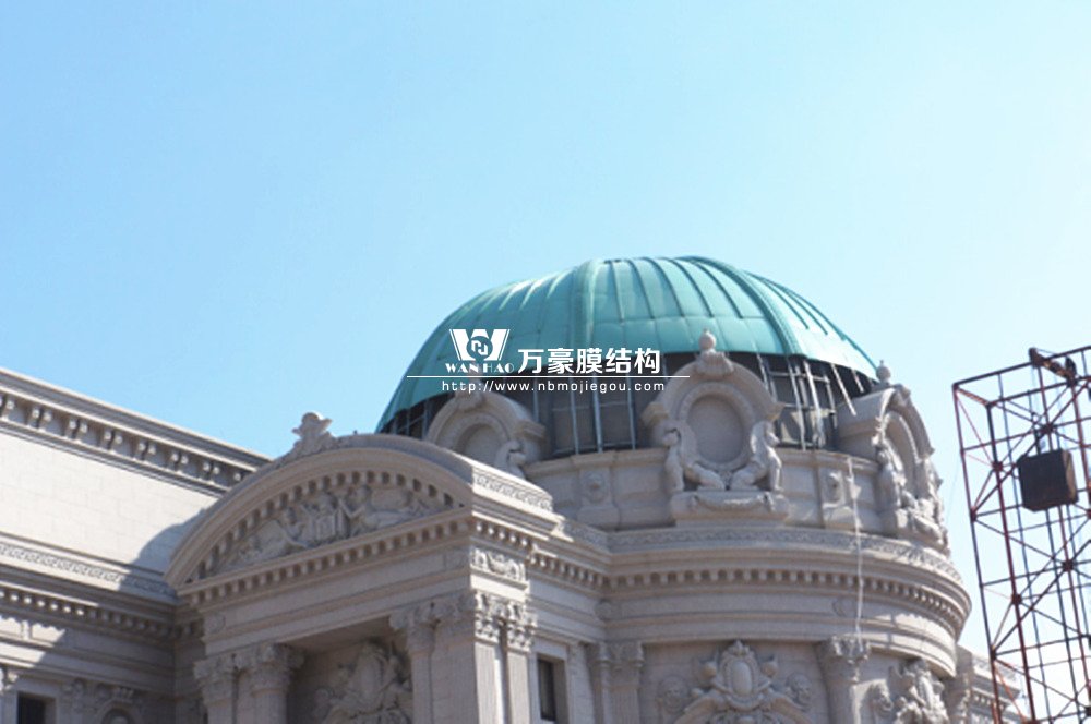 豪華的像是一個首飾盒,裝滿了各種珠寶的巴黎歌劇院目前重塑于橫店影視城圓明新園皇家園林內(nèi),其中兩側(cè)的銅綠穹頂宛如畫龍點(diǎn)睛般凸顯其精致、雄偉。兩個穹頂結(jié)構(gòu)相同并對稱,穹頂主結(jié)構(gòu)采用相同弧形彎管拼裝而成,結(jié)構(gòu)表面采用480塊大小各異的鋁單板組裝而成。