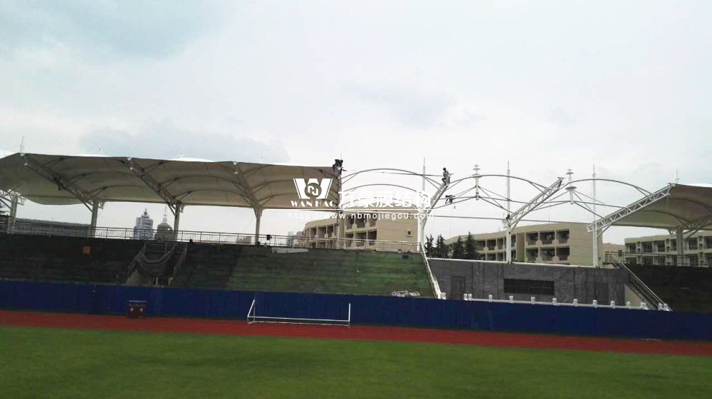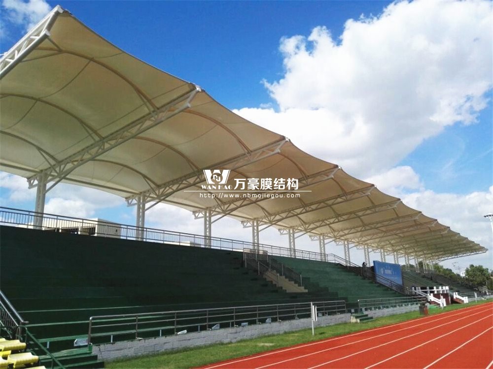 膜結構看臺決定著一個學校的形象,所以看臺設計不僅要具有可觀賞性、藝術價值、唯一性,而且還能使觀賞者與景觀產生共鳴想通。而膜結構因于其造型自由輕巧、阻燃、制作簡易、安裝快捷、節能、使用安全等優點。