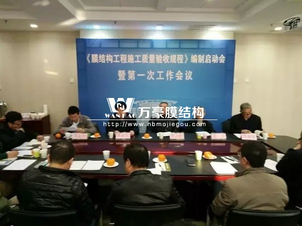 2016年12月17、18日,由北京工業(yè)大學(xué)建筑工程學(xué)院聯(lián)合中國鋼結(jié)構(gòu)協(xié)會空間結(jié)構(gòu)分會主持編制的《膜結(jié)構(gòu)施工質(zhì)量驗收規(guī)程》和《空氣支承膜結(jié)構(gòu)設(shè)計與施工技術(shù)指南》編制啟動會順利召開。來自中國建筑科學(xué)研究院、同濟(jì)大學(xué)、哈爾濱工業(yè)大學(xué)、上海交通大學(xué)、北京交通大學(xué)、北京市建筑設(shè)計研究院、上海現(xiàn)代建筑設(shè)計(集團(tuán))有限公司以及膜結(jié)構(gòu)會員單位的30多位專家出席了啟動會和第一次工作會議。(我司也榮幸的出席)