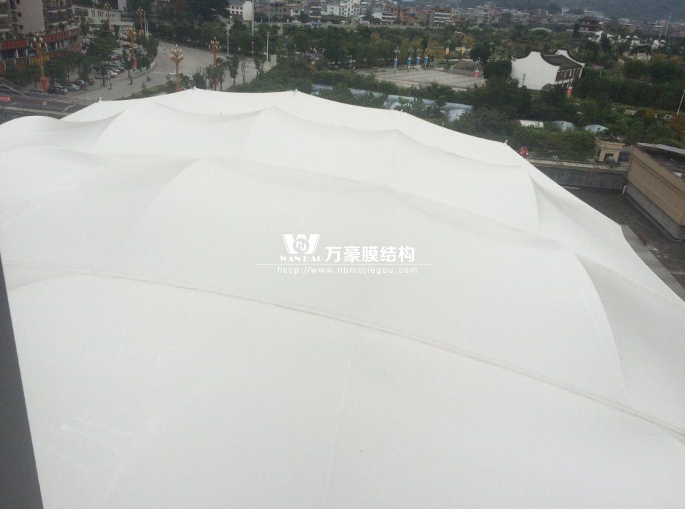 本工程系永輝超市曇石山店中庭頂棚膜結(jié)構(gòu)工程,位于福建省福州市閩侯縣城新區(qū)曇石山西大道3號(hào)新永輝超市曇石山店樓頂,該工程為鋼桁架膜結(jié)構(gòu)立體造型,以桁架為主要結(jié)構(gòu)的骨架式單層膜結(jié)構(gòu),上面采用進(jìn)口意大利耐馳膜材覆蓋。總面積約800平方米,鋼構(gòu)約25噸。該工程施工難度較大,該樓中庭商鋪已經(jīng)投入使用,大型吊車無法進(jìn)入施工,只能用小型吊車加人工共同來進(jìn)行施工,還有底下商鋪和地面成品保護(hù)和安全也是此次施工一大難點(diǎn)。用了大批的模板保護(hù)地面,同時(shí)施工時(shí)安排了安全督導(dǎo)人員,對(duì)客人進(jìn)行引導(dǎo)。工程完工后,受到了業(yè)主和客人的好評(píng)!