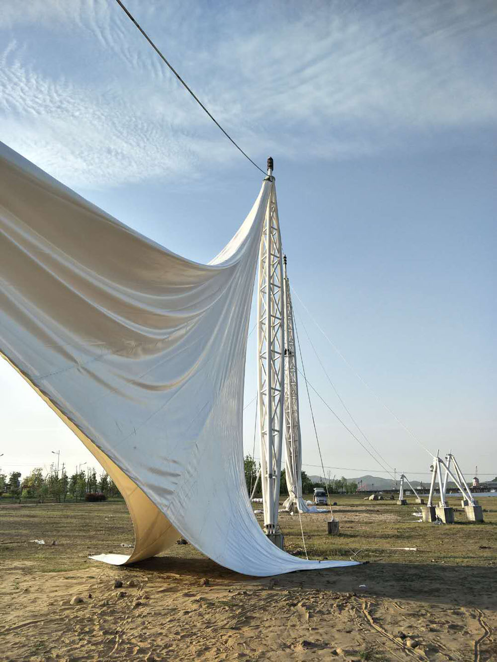 高橋灣現代產業園單飛燕、雙飛燕景觀膜結構工程地址位于安徽省霍山縣高橋灣現代產業園。此次工程由寧波萬豪空間結構工程有限公司全權負責,項目已近尾聲,已經開始裝膜。
