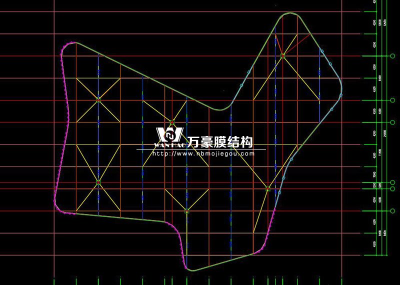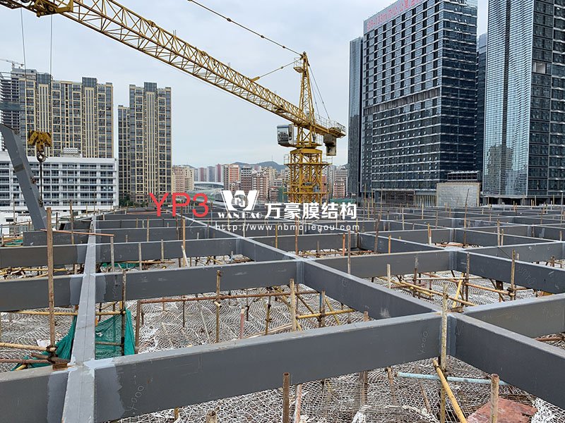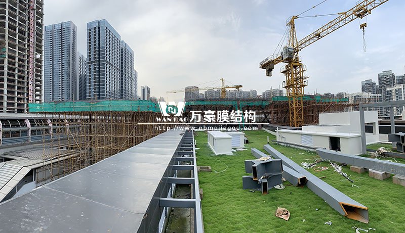 此項(xiàng)目位于廣東省深圳市龍華區(qū),膜結(jié)構(gòu)展開面積5000平米,用鋼量300噸。