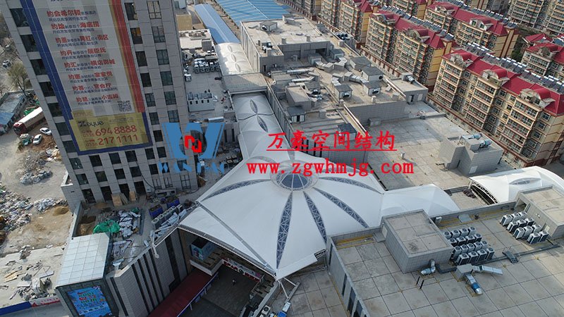 其中,新泰卓越·財富廣場膜結構屋頂項目由寧波萬豪空間結構工程有限公司承建。