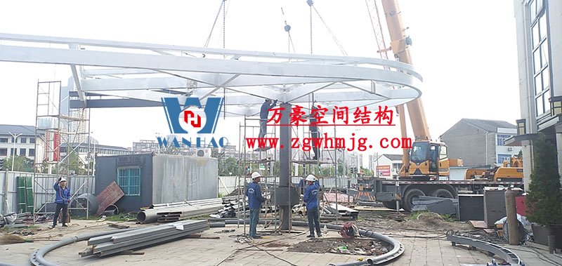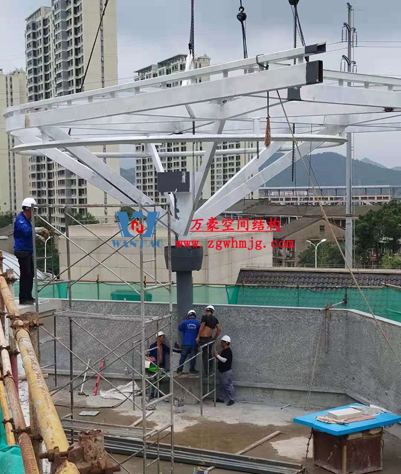 臺州大板橋ETFE氣枕天幕項目鋼結構開始吊裝