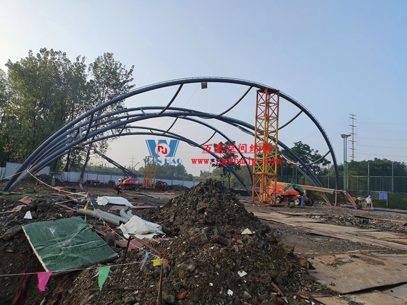 目前,網球場完成5個軸線,籃球場完成4個軸線。
