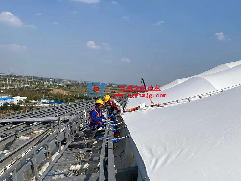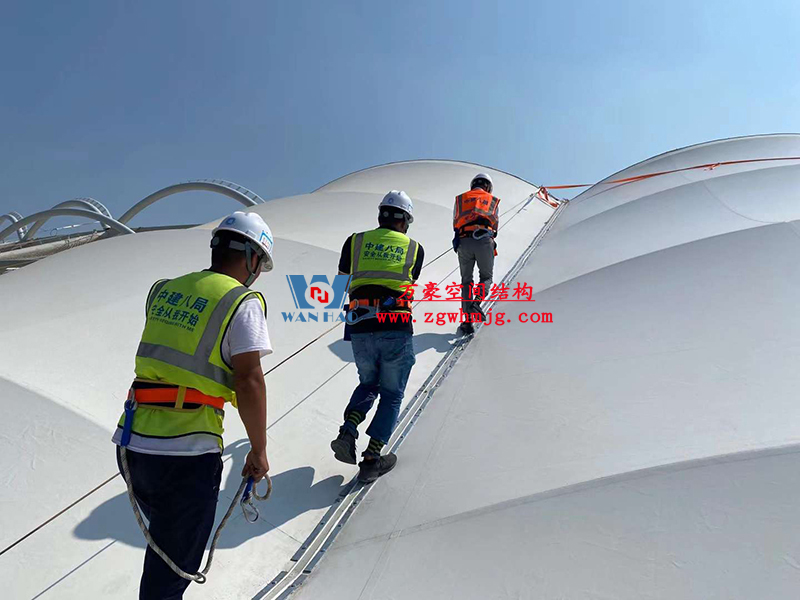襄陽奧體中心膜結(jié)構(gòu)工程膜結(jié)構(gòu)安裝中