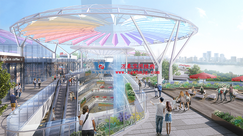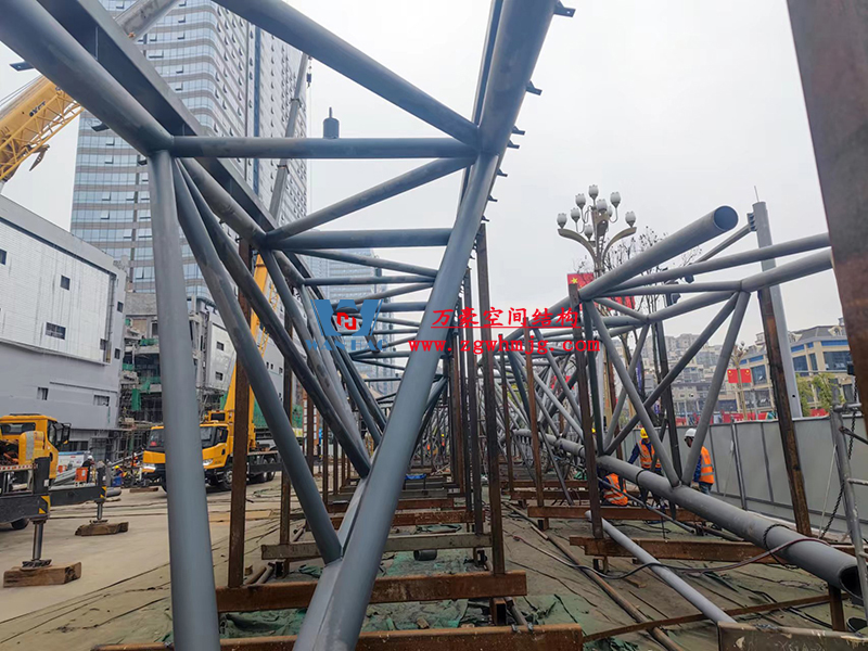 明宇廣場6號地塊商業(萬達廣場)改造項目鋼膜結構ETFE蓋頂天幕工程進入鋼結構吊裝階段