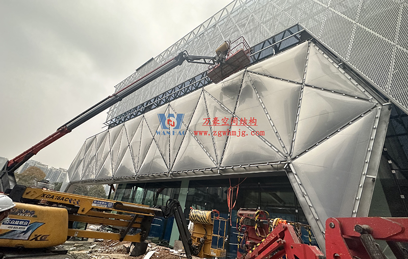 中建錦源匯廣場10-3#樓膜結構工程位于四川省成都市高新區應龍南一路與觀東二街交匯處,該項目ETFE膜結構展開面積700平米,PTFE膜結構展開面積700平米。由寧波萬豪空間結構工程有限公司承建。