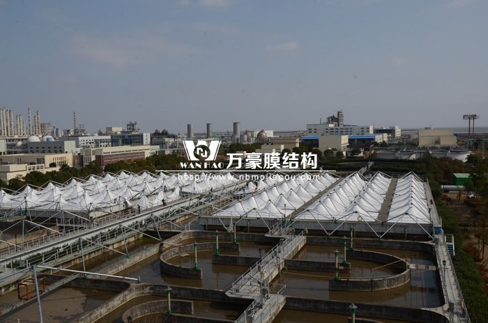 寧波北區(qū)污水處理廠廠址位于鎮(zhèn)海新泓口甬舟高速與化工區(qū)主干道交叉口附近,污水廠一期建設(shè)用地15.48公頃,膜結(jié)構(gòu)加蓋面積達(dá)一萬(wàn)多平方米。